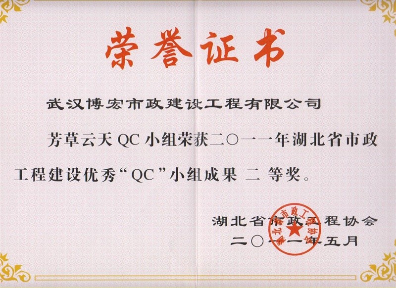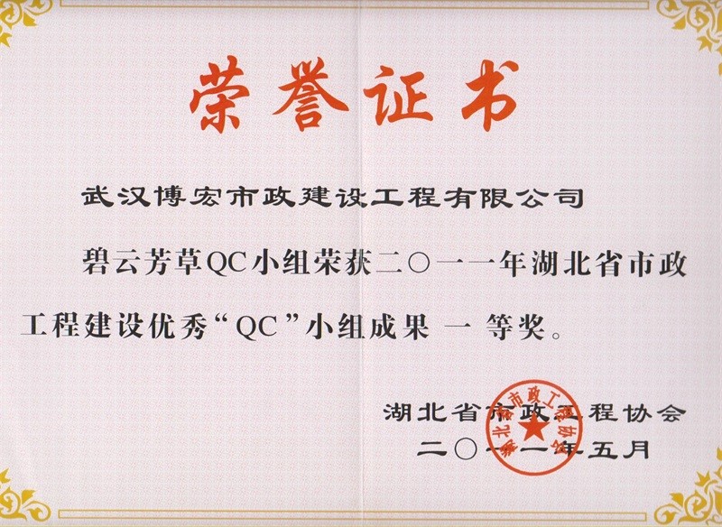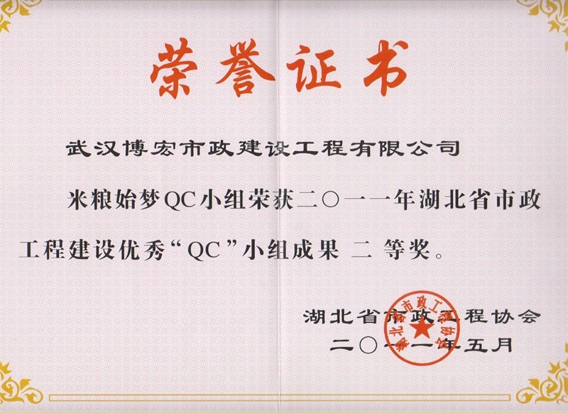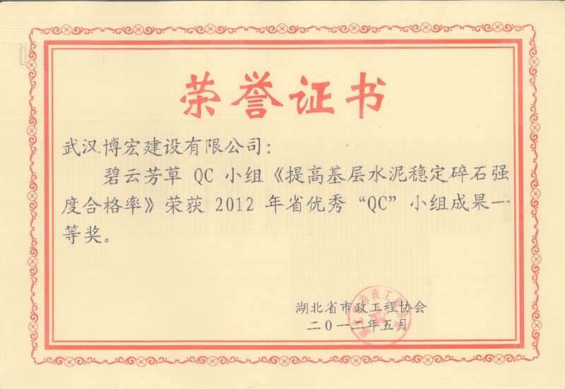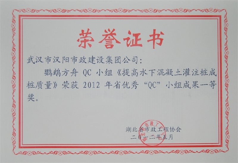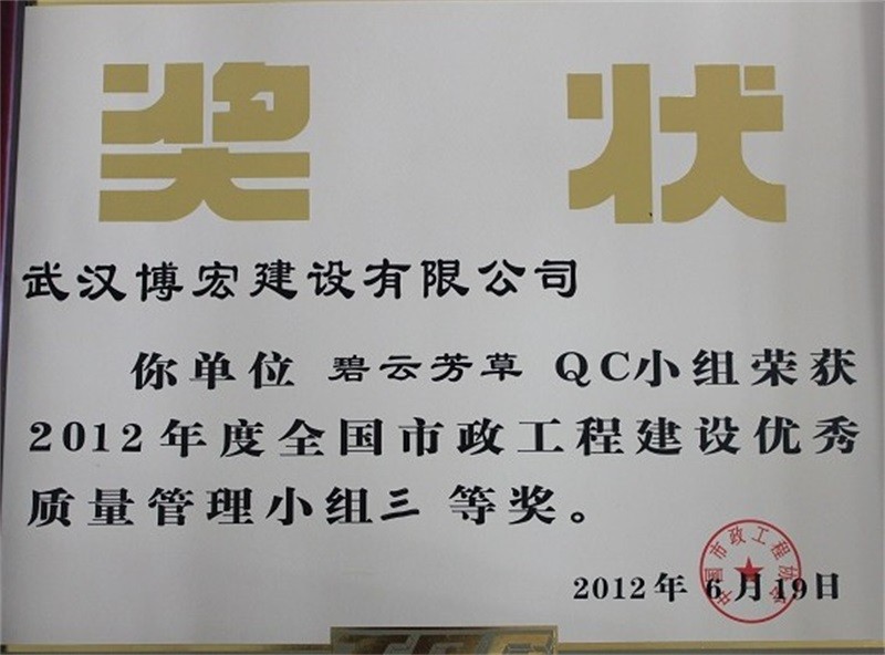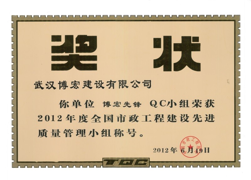 2012年度全國(guó)市政工程建設(shè)先進(jìn)質(zhì)量管理小組