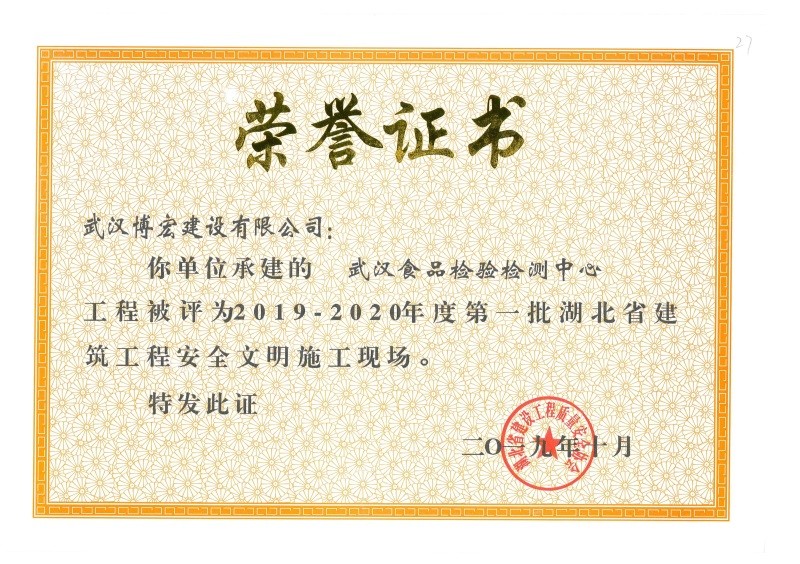 2019-2020年度第一批湖北省建筑工程安全文明施工現(xiàn)場(chǎng)(武漢食品檢驗(yàn)檢測(cè)中心)