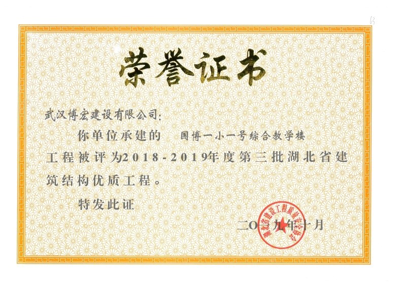 2018-2019年度第三批湖北省建筑結(jié)構(gòu)優(yōu)質(zhì)工程(國博一小一號(hào)綜合教學(xué)樓)