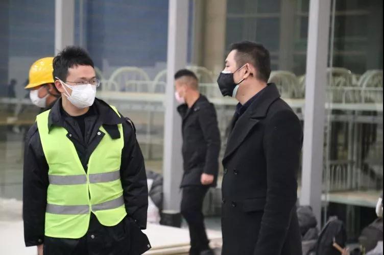 張光(右)在“火神山”項(xiàng)目現(xiàn)場協(xié)調(diào)施工