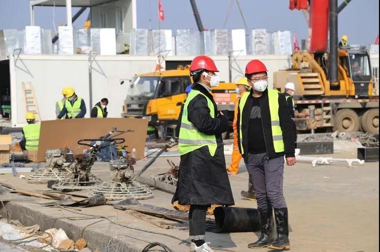 陶文藝(右)在“火神山”項(xiàng)目現(xiàn)場,