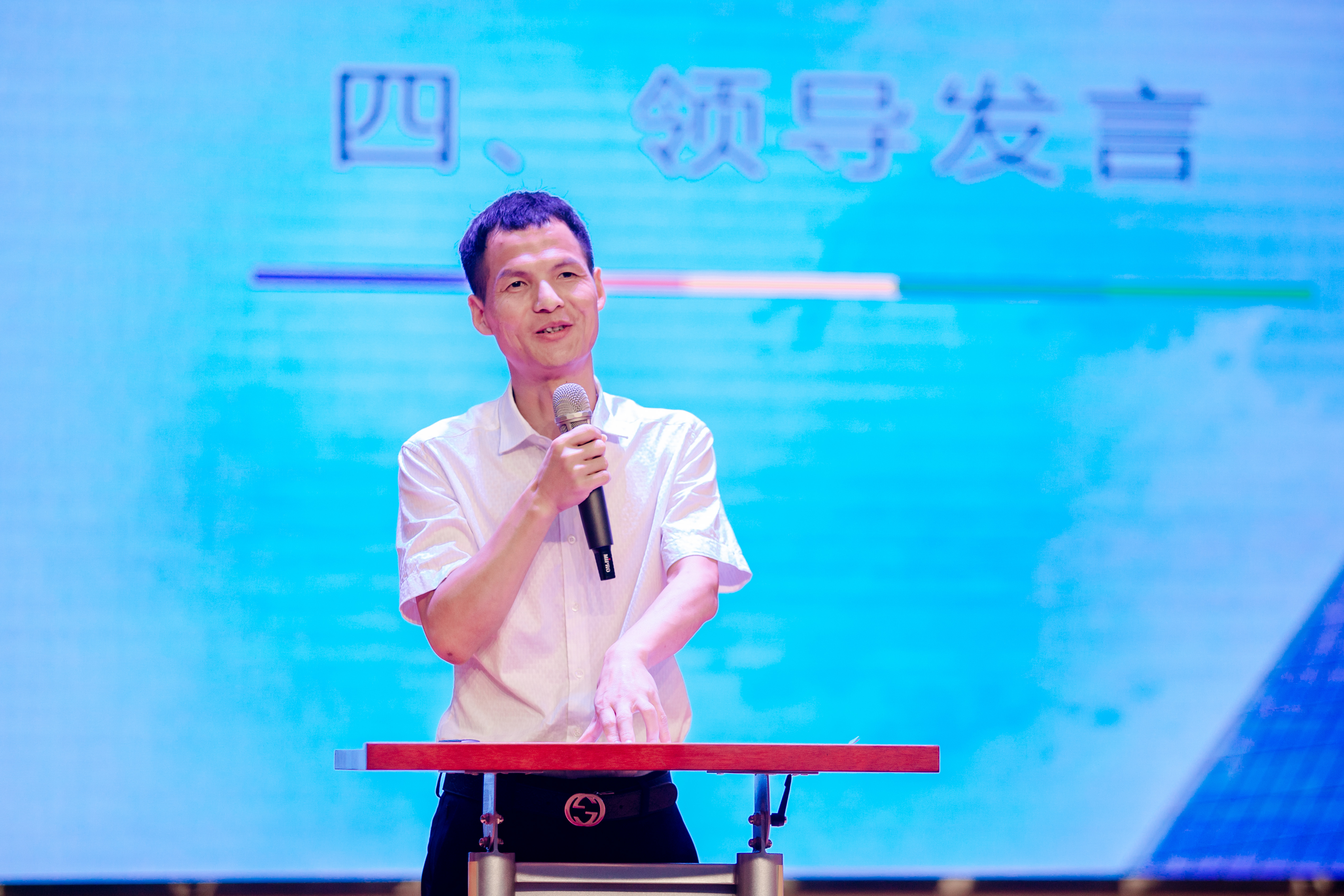 優(yōu)秀員工經(jīng)驗(yàn)分享之后,便是黨支部書(shū)記、董事長(zhǎng)鄒勇的職場(chǎng)寄語(yǔ)環(huán)節(jié)。此刻場(chǎng)內(nèi)氣氛頻頻活躍,場(chǎng)外大雨如注,仿佛也因?yàn)檫@些“新鮮血液”的注入變得熱烈沸騰!鄒勇的接地氣又富有哲理的真誠(chéng)寄語(yǔ)引發(fā)深刻共鳴。他從自身工作經(jīng)歷經(jīng)驗(yàn)出發(fā),對(duì)新員工提出了擺正心態(tài)、敢于做難事、常懷感恩心、腳踏實(shí)地做實(shí)事、與企業(yè)同命運(yùn)共呼吸并不斷修煉品格,完善自我等建議寄語(yǔ)。從鄒勇的寄語(yǔ)中,新員工們體會(huì)到了“博大宏遠(yuǎn)、自強(qiáng)不息”的深意,也深深感受到了他對(duì)“新能量”注入的欣喜和殷切期許。