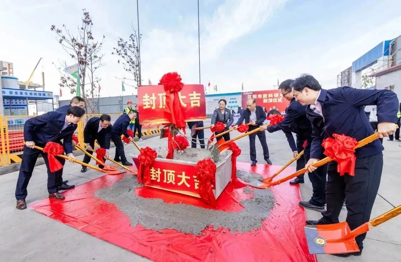 11點(diǎn)13分,嚴(yán)俊、王晟及漢陽(yáng)市政集團(tuán)、博宏建設(shè)集團(tuán)等相關(guān)單位領(lǐng)導(dǎo)共同為項(xiàng)目澆筑最后一方混凝土,現(xiàn)場(chǎng)禮炮齊鳴,封頂儀式圓滿(mǎn)完成,標(biāo)志著漢陽(yáng)市政科研中心順利完成一個(gè)里程碑節(jié)點(diǎn),現(xiàn)已進(jìn)入新的建設(shè)階段。